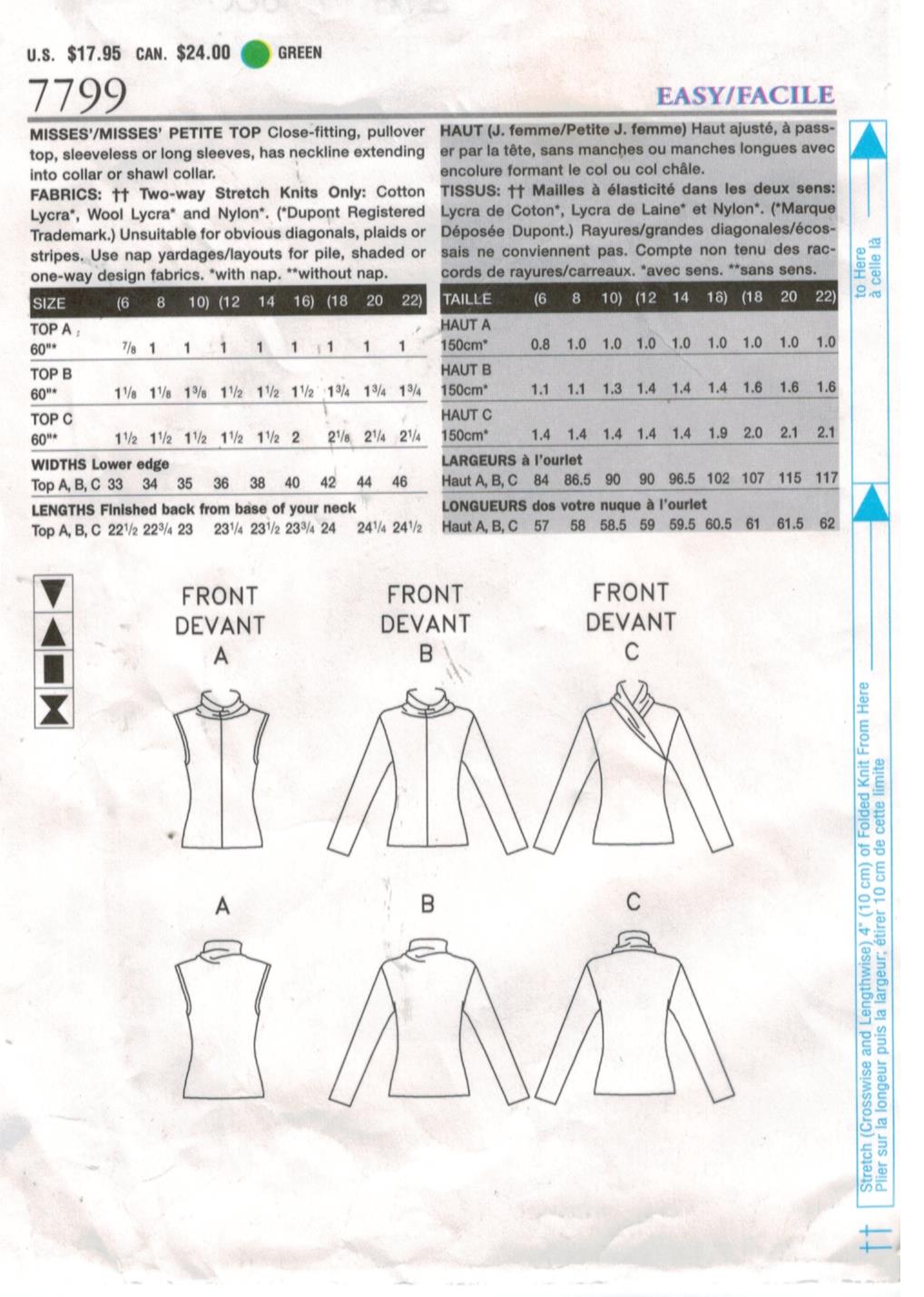 Vogue Pattern 7799 Easy To Sew Knit Blouse Tops Sizes 6 8 10 Sewing Pattern Heaven